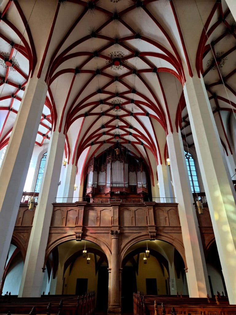 | 1.Principal 16′ 2.Bordun 16′ 3.Principal 8′ 4. Geigenprincipal 8′ 5.Doppelflöte 8′ 6.Flûte harm 8′ 7.Flauto dolce 8′ 8.Gemshorn 8′ 9.Gedackt 8′ 10.Quintatön 8′ 11.V D Gamba 8′ 12.Dulciana 8′ 13.Quinte 5 1⁄3′ 14.Octave 4′ 15.Rohrflöte 4′ 16.Gemshorn 4′ 17.Violini 4′ 18.Octave 2′ 19.Rauschquinte II 20.Mixtur III 21.Cornett II–IV 22.Scharf V 23.Groß-Cymbel IV 24.Bombarde 16′ 25.Trompete 8′ | 26.Salicional 16’ 27.Gedackt 16′ 28.Principal 8′ 29.Flûte harm 8′ 30.Konzertflöte 8′ 31.Rohrflöte 8′ 32.Gedackt 8′ 33.Schalmei 8′ 34.Salicional 8′ 35.Harmonica 8′ 36.Dolce 8′ 37.Octave 4′ 38.Flaute dolce 4′ 39.Salicional 4′ 40.Quinte 2 2⁄3′ 41.Piccolo 2′ 42.Cornett III 43.Mixtur IV 44.Cymbel III 45.Tuba 8′ 46.Clarinette 8‘ | 47.Lieblich Gedackt 16′ 48.Gamba 16′ 49.Principal 8′ 50.Spitzflöte 8′ 51.Flûte d’amour 8′ 52.Gemshorn 8′ 53.Gedackt 8′ 54.Quintatön 8′ 55.Viola 8′ 56.Aeoline 8′ 57.Voix céleste 8′ 58.Praestant 4′ 59.Traversflöte 4′ 60.Fugara 4′ 61.Quinte 2 2⁄3′ 62.Flautino 2′ 63.Harmonia aetheria III 64.Trompette harmonique 8′ 65.Oboe8′ | 66.Majorbass 32′ 67.Untersatz 32′ 68.Principal 16′ 69.Contrabass 16′ 70.Subbass 16′ 71.Lieblich Gedackt 16′ 72.Gemshorn 16′ 73.Violon 16′ 74.Salicetbass 16′ 75.Quintbass 10 2⁄3′ 76.Octave 8′ 77.Offenbass 8′ 78.Bassflöte 8′ 79.Gemshorn 8′ 80.Cello 8′ 81.Dulciana 8′ 82.Octave 4′ 83.Flauto dolce 4′ 84.Contraposaune 32’ 85.Posaune 16′ 86.Fagott 16′ 87.Trompete 8′ 88.Clarine 4′ |